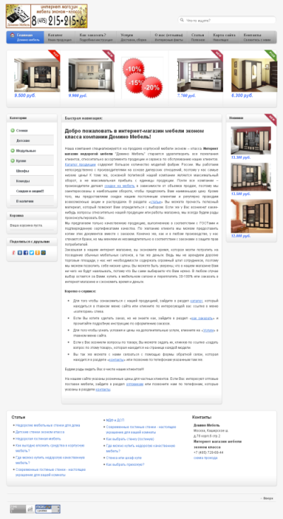 Представляем вам новый интернет-магазин мебели - dominomebel.ru. По запросу заказчика мы полностью обновили дизайн сайта и переписали внутреннюю часть под наш движок на платформе Yii